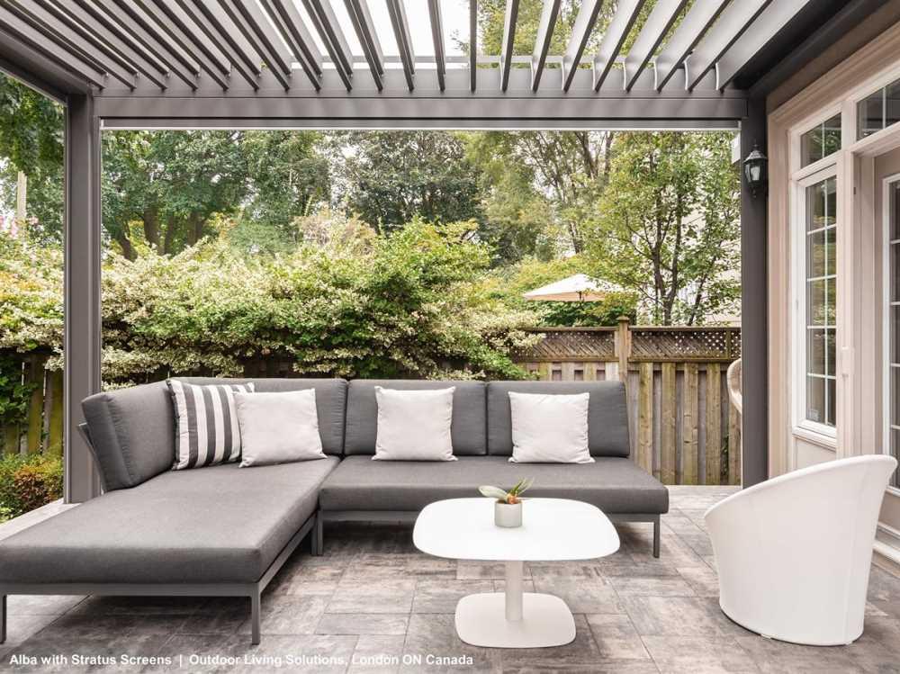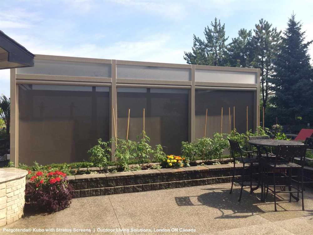 The Stratus has been created for comprehensive protection against light and weather with versatility to adjust and enclose the environment within a Corradi structure. The design of the Stratus is based off of our long-standing proprietary Summit exterior screen. It’s a screen specifically designed to integrate into most Pergotenda® systems for complete enclosure that assists in protection from the elements and gives the option of privacy.
