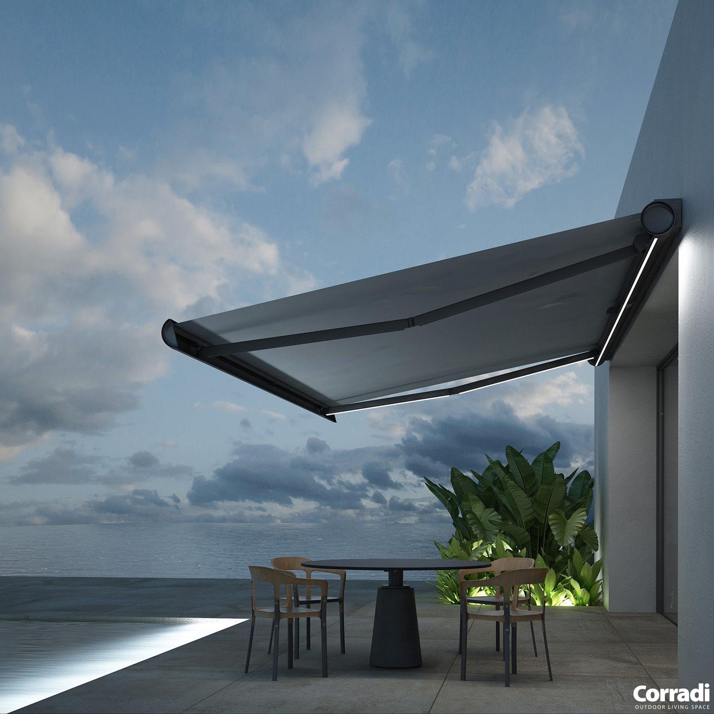Breaking the patterns of the shading industry with its round cassette, the Feng awning offers unique design elements with cutting-edge features that redefine outdoor comfort and style. Its innovative design not only exemplifies superior shade, but also enhances the ambiance of any patio.
