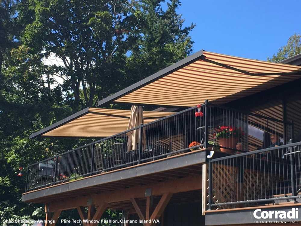 The patented Shan awning by ShadeLab has a compact box design (10" high, 7 ¼" deep) and spans up to 23 feet wide with a 13.5-foot projection.