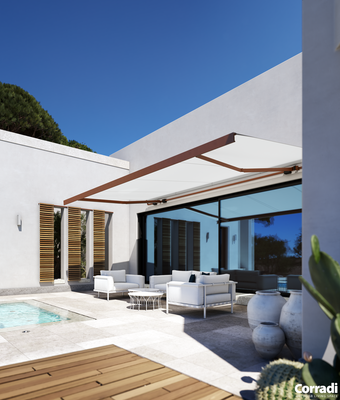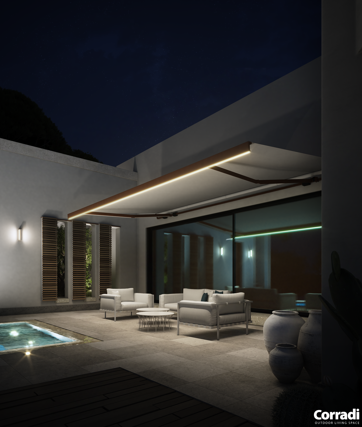 Svet is an aesthetic revolution in the awning world with its premium design that incorporates square profiles and cutting edge performance. Its innovative features complement both new and existing architecture.