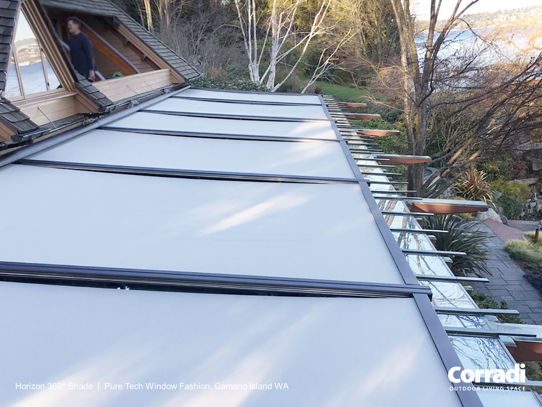 Horizon is a shade structure unlike any other outdoor screen. Designed for 360° of interior and exterior skylight shading, as well as for mounting to existing structures for patio areas. It can protect exterior window applications, including skylights, atriums and sunrooms, to help reduce energy usage and allow for more temperature control in the home or building envelope. It can even be used for bottom-up applications as well as any horizontal application.And, it is the perfect solution for providing shade on top of an existing open structure like a pergola.