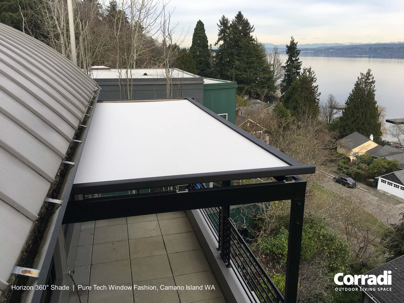 Horizon defies gravity with 360 degrees of possibilities. It is a unique answer to controlling the sun’s harsh U.V. rays with its ability to be mounted either vertically like a screen, horizontally like an awning, or at any other angle in-between. It uses a tensioned-cord, spring-loaded design that covers large areas with no center cord, supports, etc. The Horizon system is designed for interior and exterior skylight shading, as well as mounting to existing structures for patio areas.