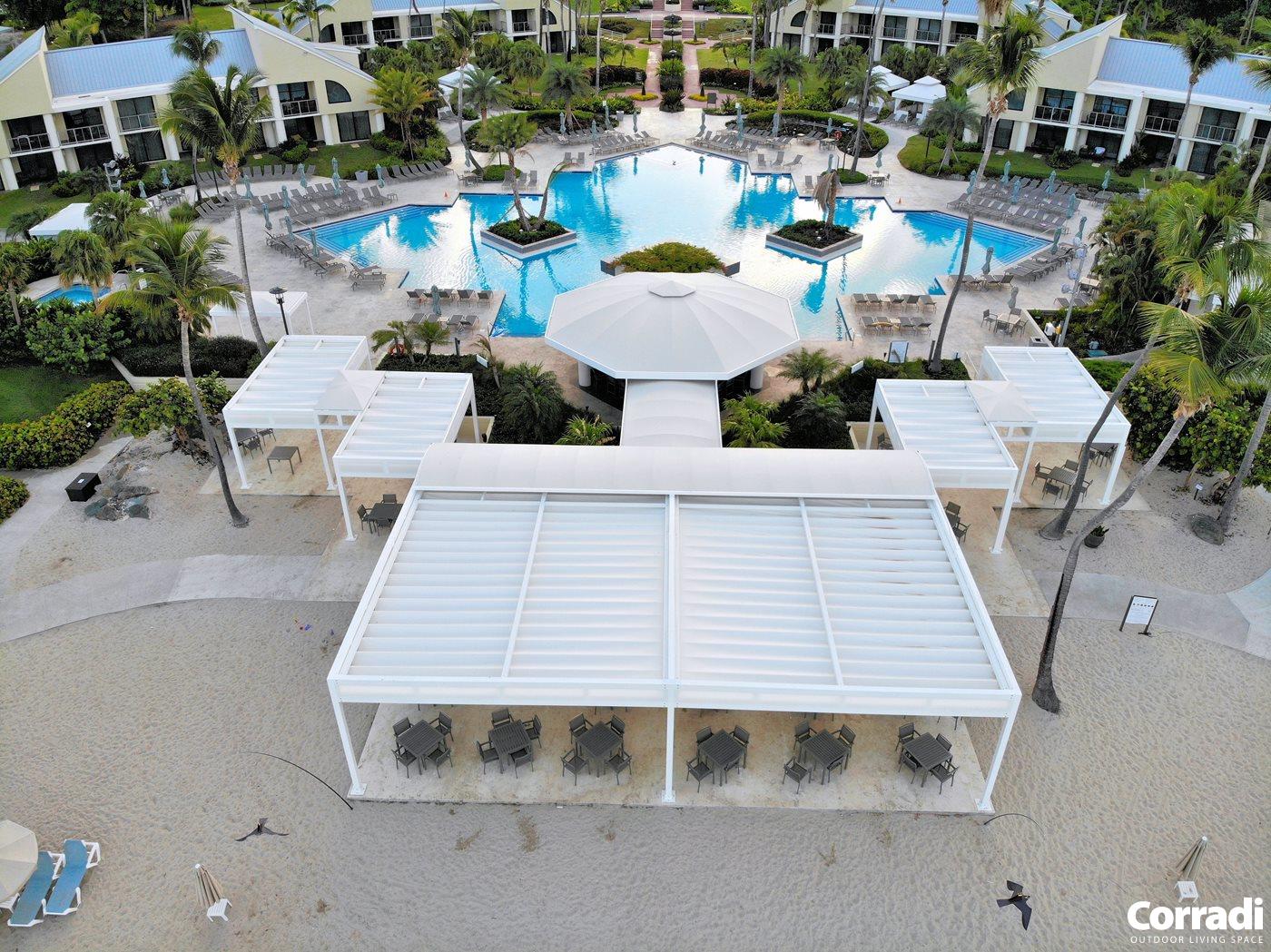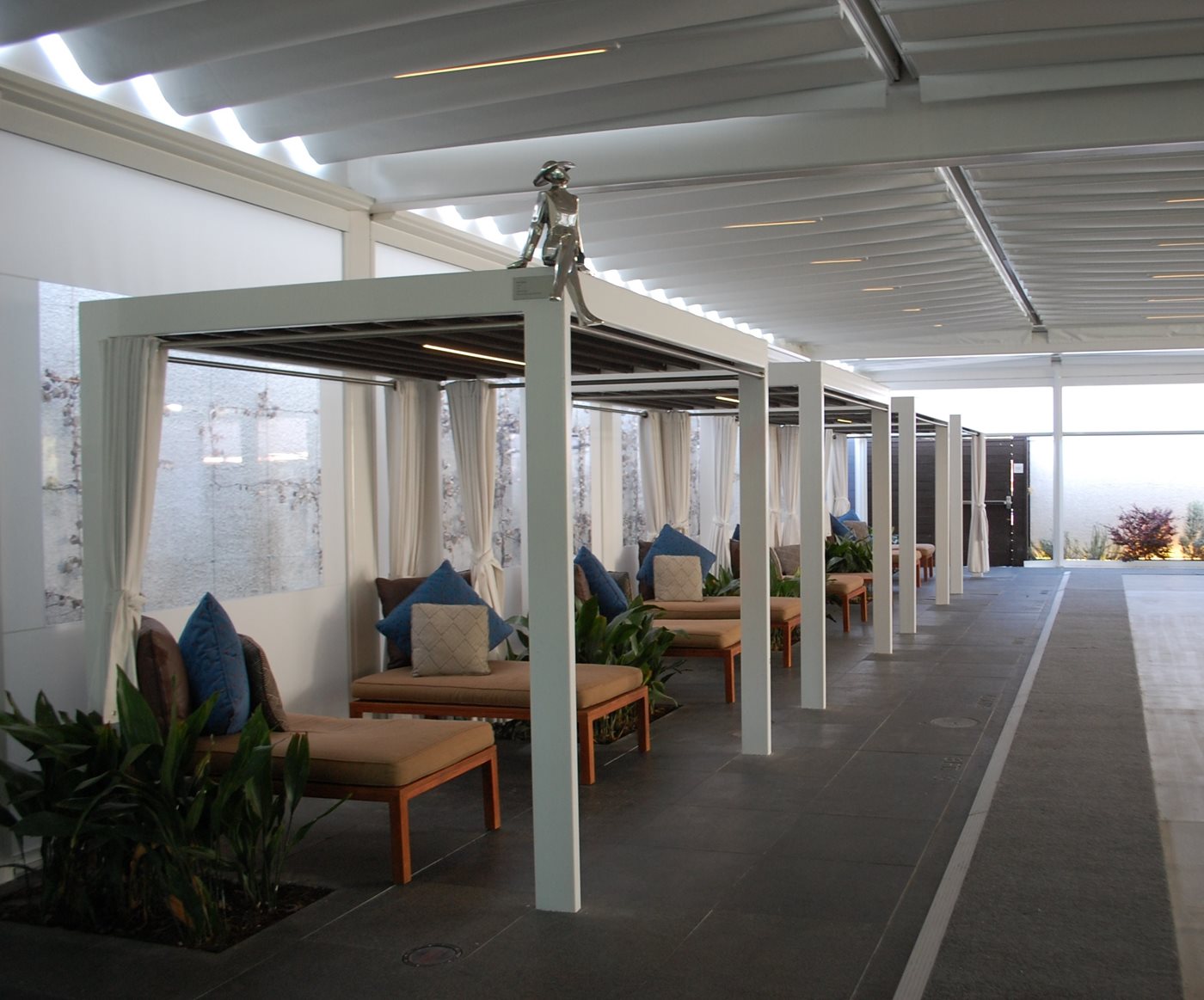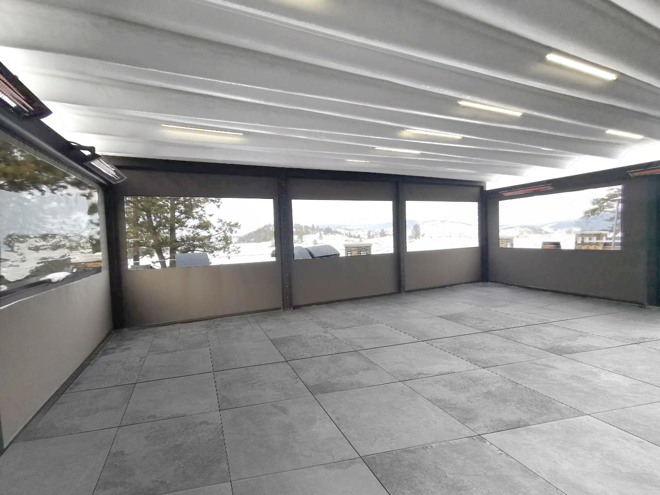 deal for enriching hotel pool areas or restaurant rooftops, the B-Space embodies unparalleled versatility, strength, and expansive coverage. Elevate both the capacity and sophistication of your establishment, and ensure guests benefit from an uninterrupted space regardless of the weather. Enjoy all-day use with the choice of optional LED lighting, or create extra privacy by adding exterior screens.