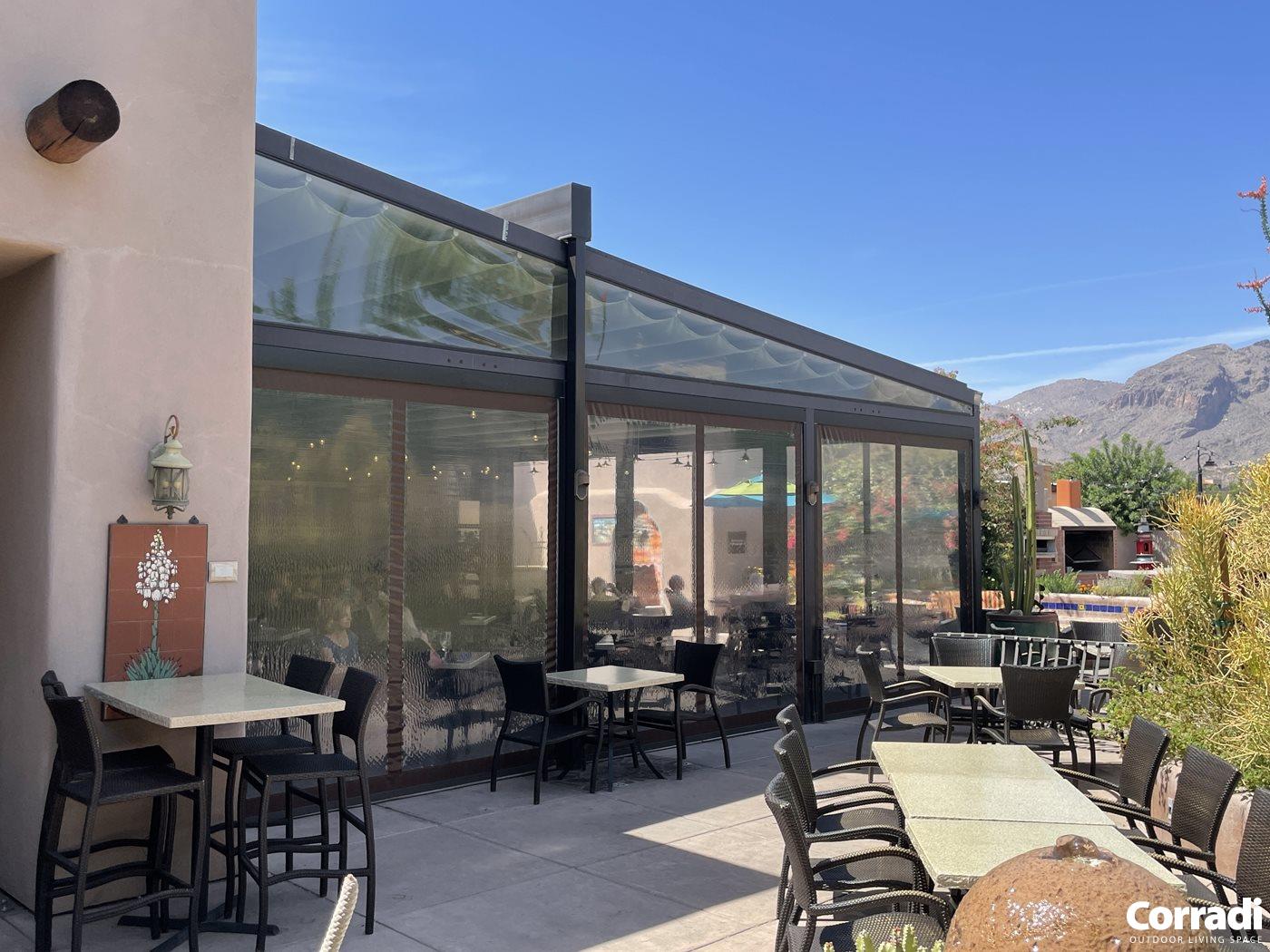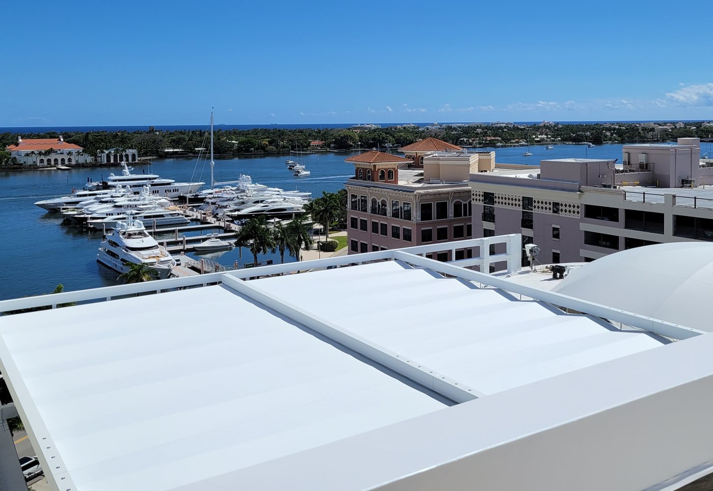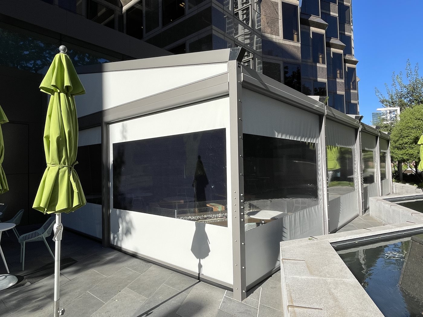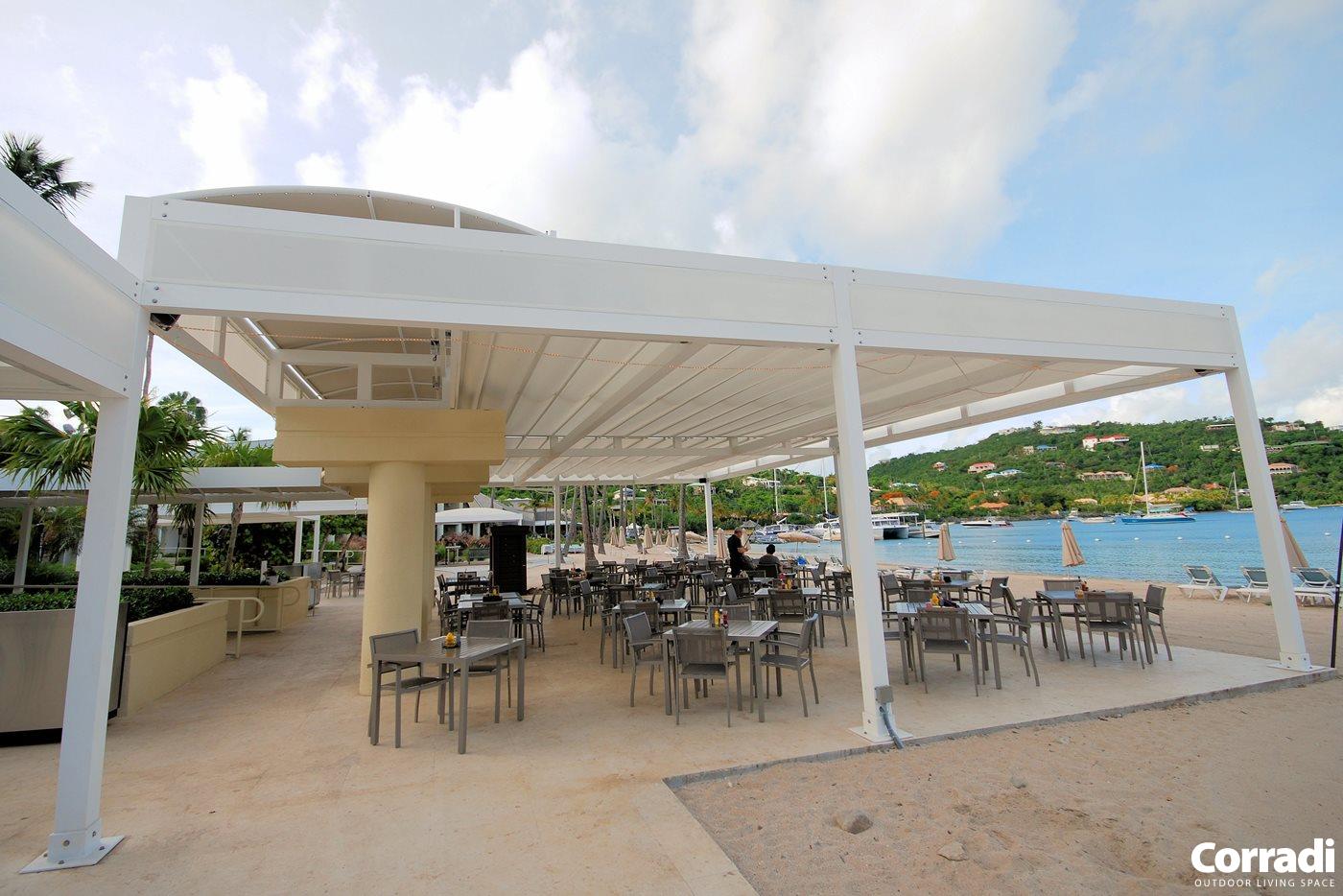 deal for enriching hotel pool areas or restaurant rooftops, the B-Space embodies unparalleled versatility, strength, and expansive coverage. Elevate both the capacity and sophistication of your establishment, and ensure guests benefit from an uninterrupted space regardless of the weather. Enjoy all-day use with the choice of optional LED lighting, or create extra privacy by adding exterior screens.