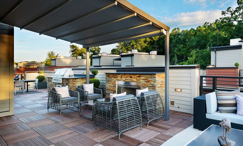 The Palladia® stands out for its simple yet adaptable design. The aluminum structure and retracting canvas is available in a sloped or flat roof option for unparalleled customization. The shading system is ideal for residential applications, providing excellent protection against sun, rain and wind, while maintaining a minimalistic, sleek look that complements any home.