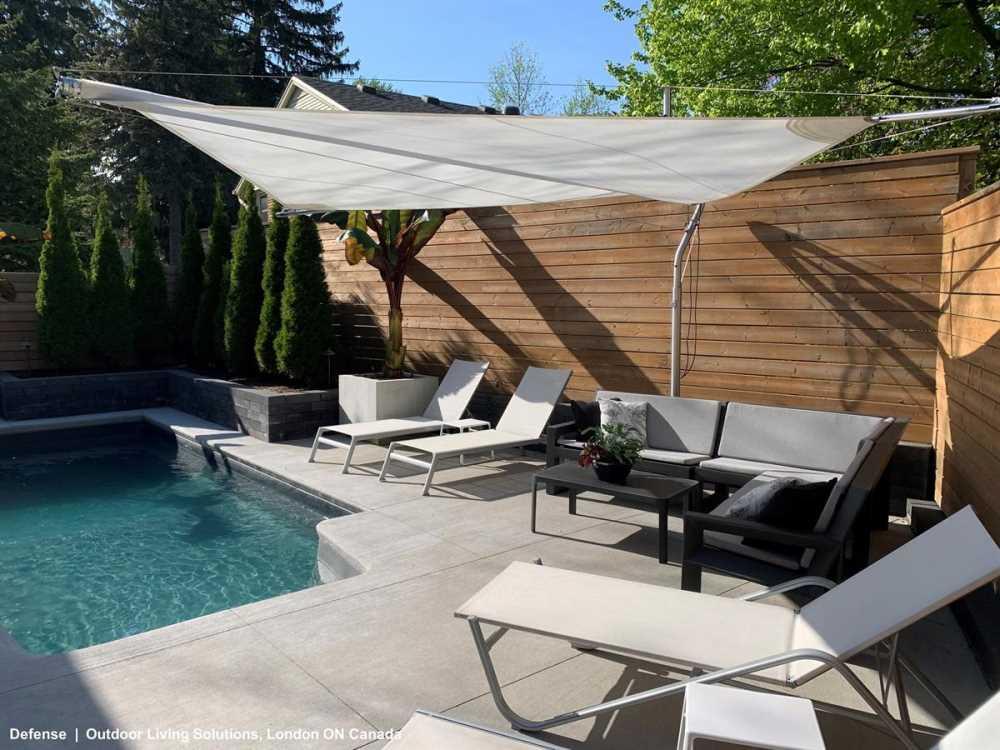 The Defense Shade Sail represents a unique, alternative solution for water-resistant solar protection. Drawing nautical inspiration and embodying marine technology, it utilizes very durable materials commonly used on boats. Despite its ethereal appearance, the sail is sturdy and low maintenance.