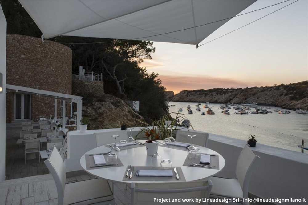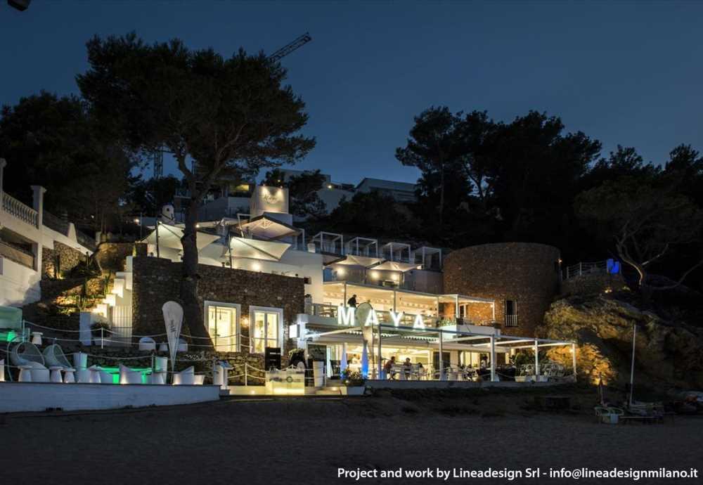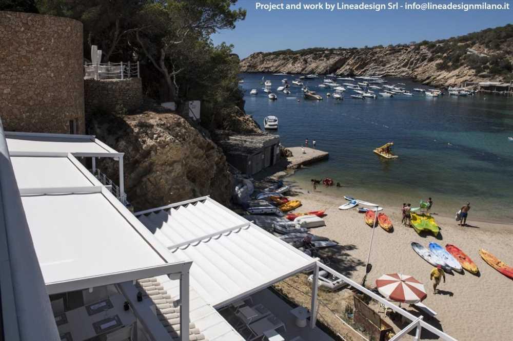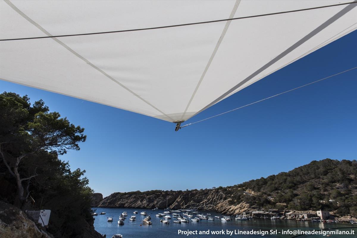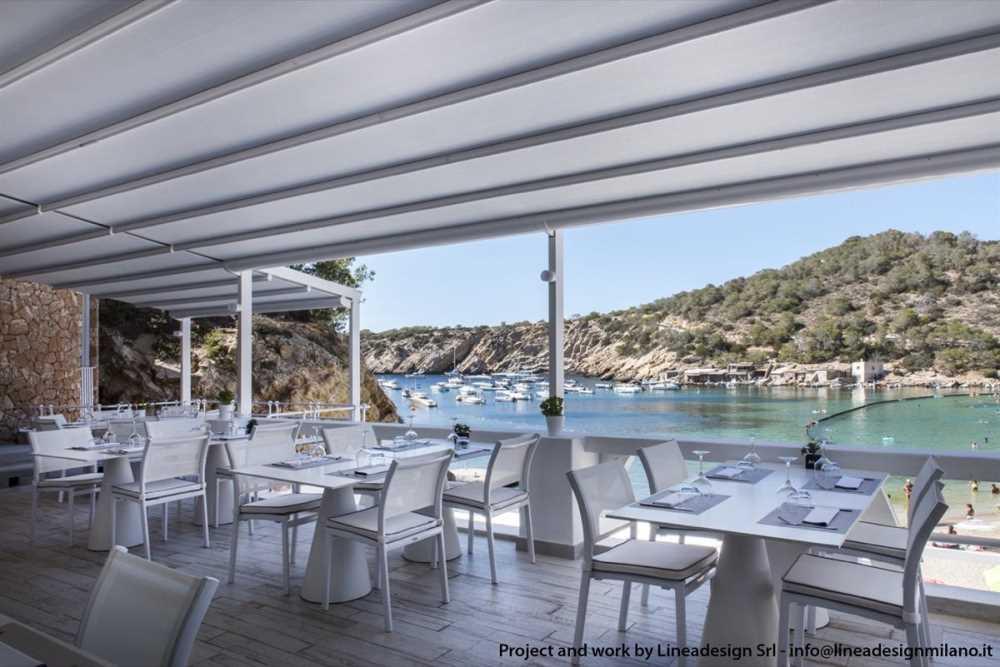 Housed in a typical Mediterranean building made of simple materials and white plaster permeated by a sophisticated mood, the Maya Beach Club has chosen a project by Linea Design to protect its exclusive three-level terrace overlooking the Ibiza sea.