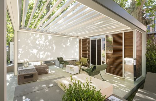 Aura is de oplossing van Corradi voor wie het licht wil kunnen aanpassen en een elegante ruimte creëren. De lamellen, zowel verstelbaar als vast, kunnen van aluminium worden gemaakt, voor een eigentijds gevoel, of van essenhout, voor een warm en natuurlijk gevoel. Dankzij de mogelijkheid om de hoeveelheid lucht en licht aan te passen kan er een balans worden gecreëerd tussen thermisch comfort en privacy. De zonwering van Corradi onderscheidt zich door het elegante design en de robuustheid van de materialen waardoor de pergola een subtiele toevoeging wordt.
