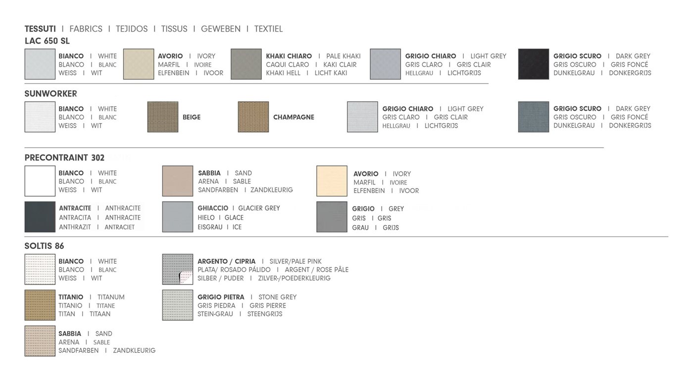 I tessuti filtranti e oscuranti con cui è prodotta garantiscono la massima protezione dagli agenti atmosferici e aiutano a schermare efficacemente la luce senza occludere il passaggio di aria. L’altezza di Diffusa XL è regolabile a piacere perché facilitata da binari di scorrimento presenti lungo i lati di ciascun pannello. In questo modo, è possibile scegliere di ombreggiare o esporre ai raggi solari solo alcune aree del pergolato senza essere costretti a scegliere tra verande chiuse o aperte totalmente.