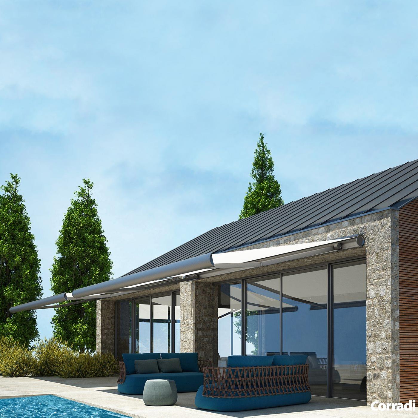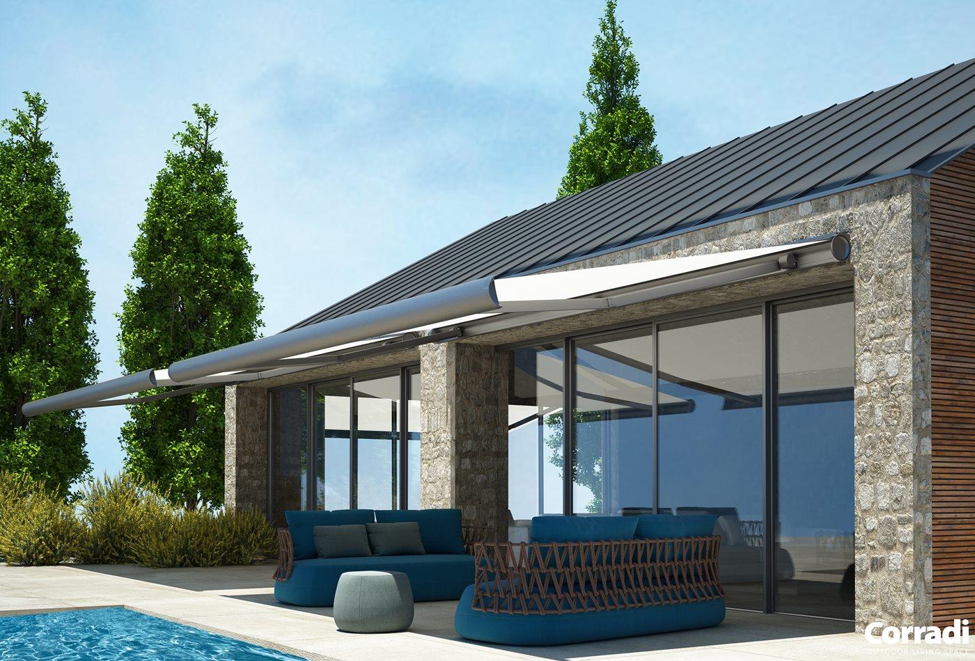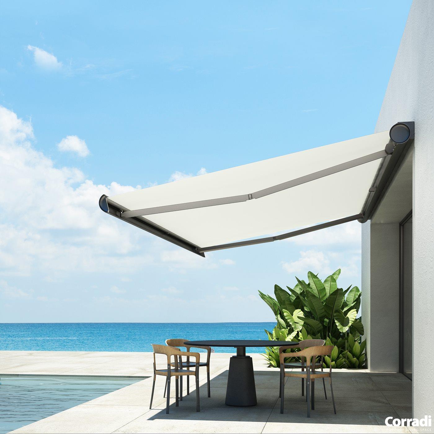 Breaking the patterns of the shading industry with its round cassette, the Feng awning offers unique design elements with cutting-edge features that redefine outdoor comfort and style. Its innovative design not only exemplifies superior shade, but also enhances the ambiance of any patio.