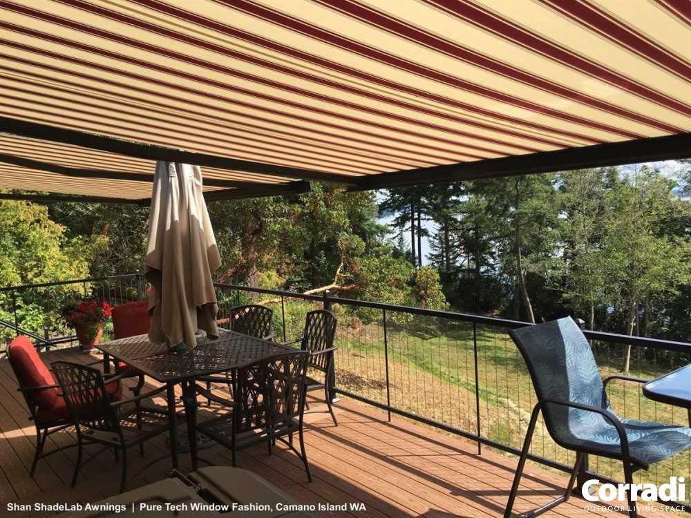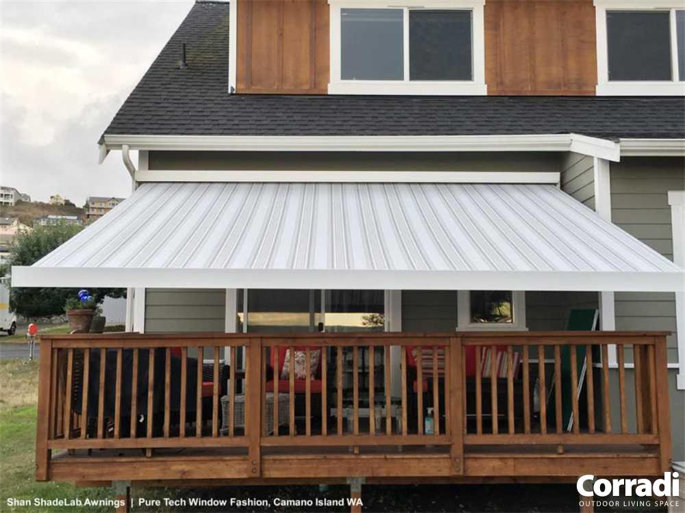 The patented Shan awning by ShadeLab has a compact box design (10" high, 7 ¼" deep) and spans up to 23 feet wide with a 13.5-foot projection.