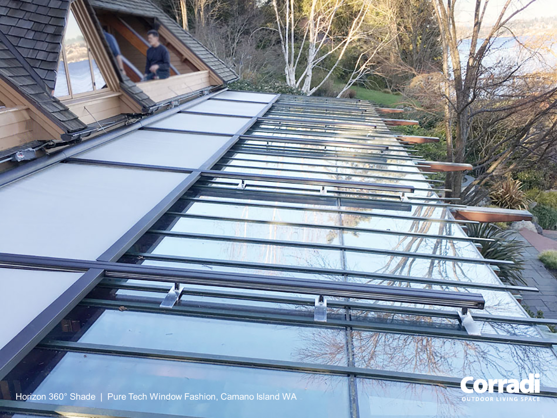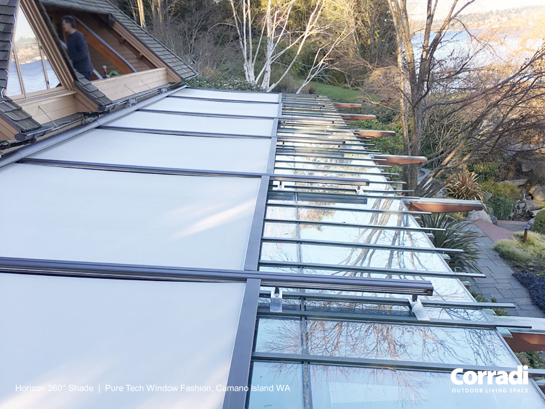 Horizon is a shade structure unlike any other outdoor screen. Designed for 360° of interior and exterior skylight shading, as well as for mounting to existing structures for patio areas. It can protect exterior window applications, including skylights, atriums and sunrooms, to help reduce energy usage and allow for more temperature control in the home or building envelope. It can even be used for bottom-up applications as well as any horizontal application.And, it is the perfect solution for providing shade on top of an existing open structure like a pergola.