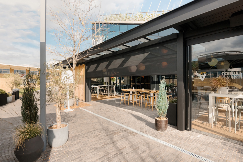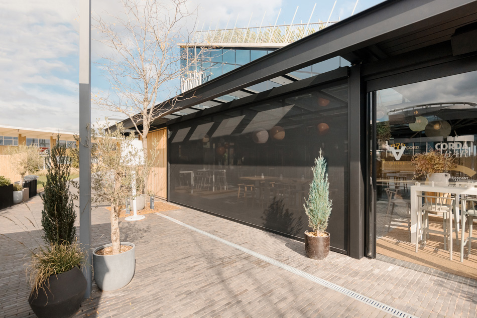 Built for high winds and challenging conditions, Zenith combines reinforced structural elements with a sleek, modern design. The enlarged bottom bar and reengineered endcaps deliver superior stability and fabric protection, ensuring long-lasting performance without sacrificing aesthetics.