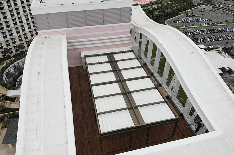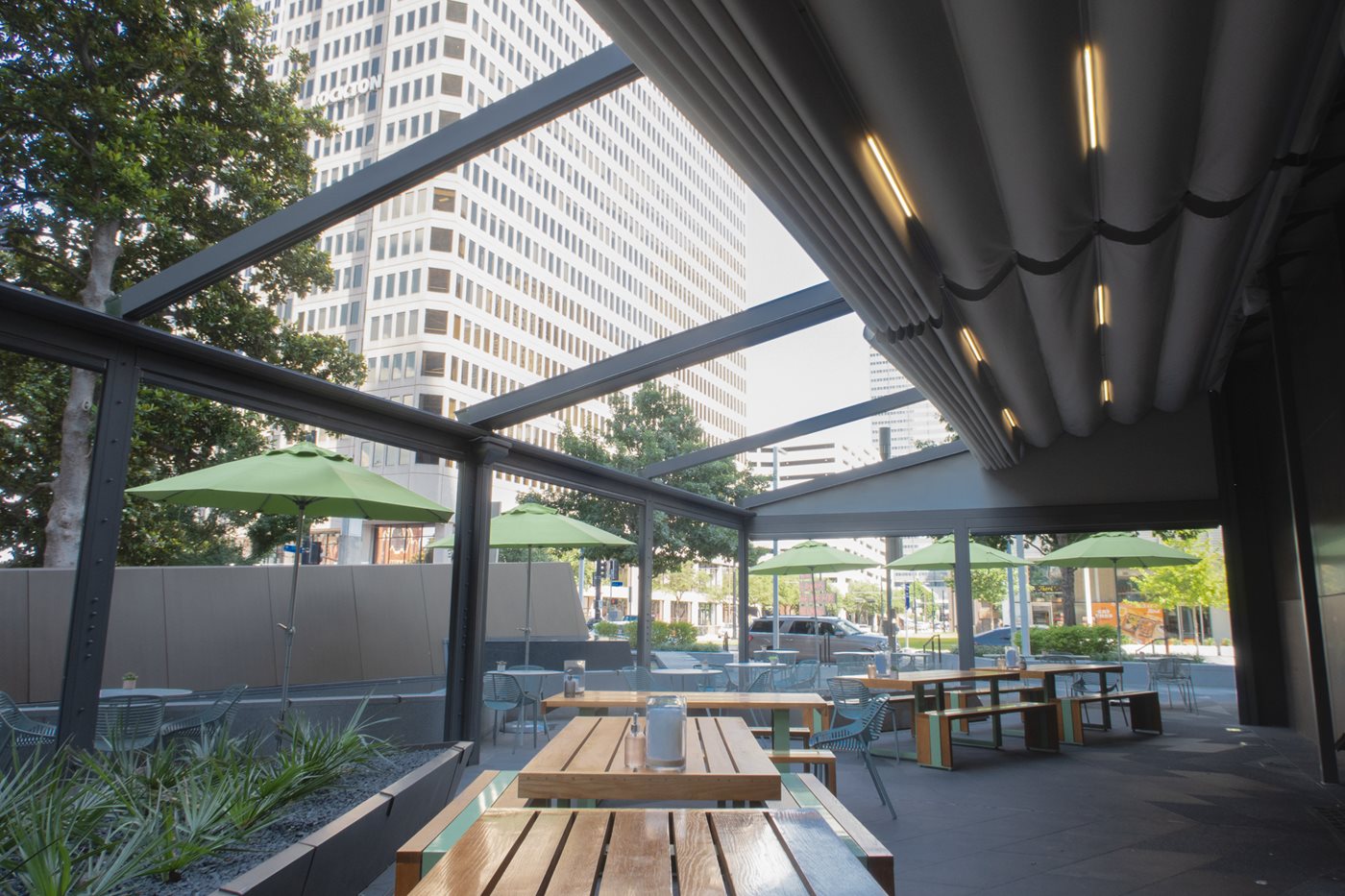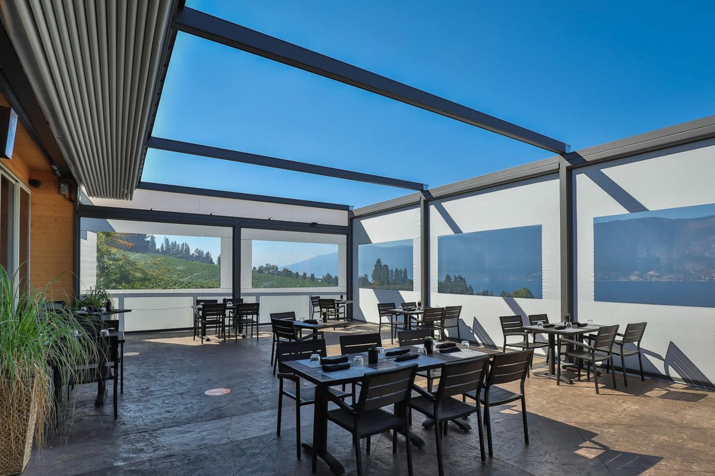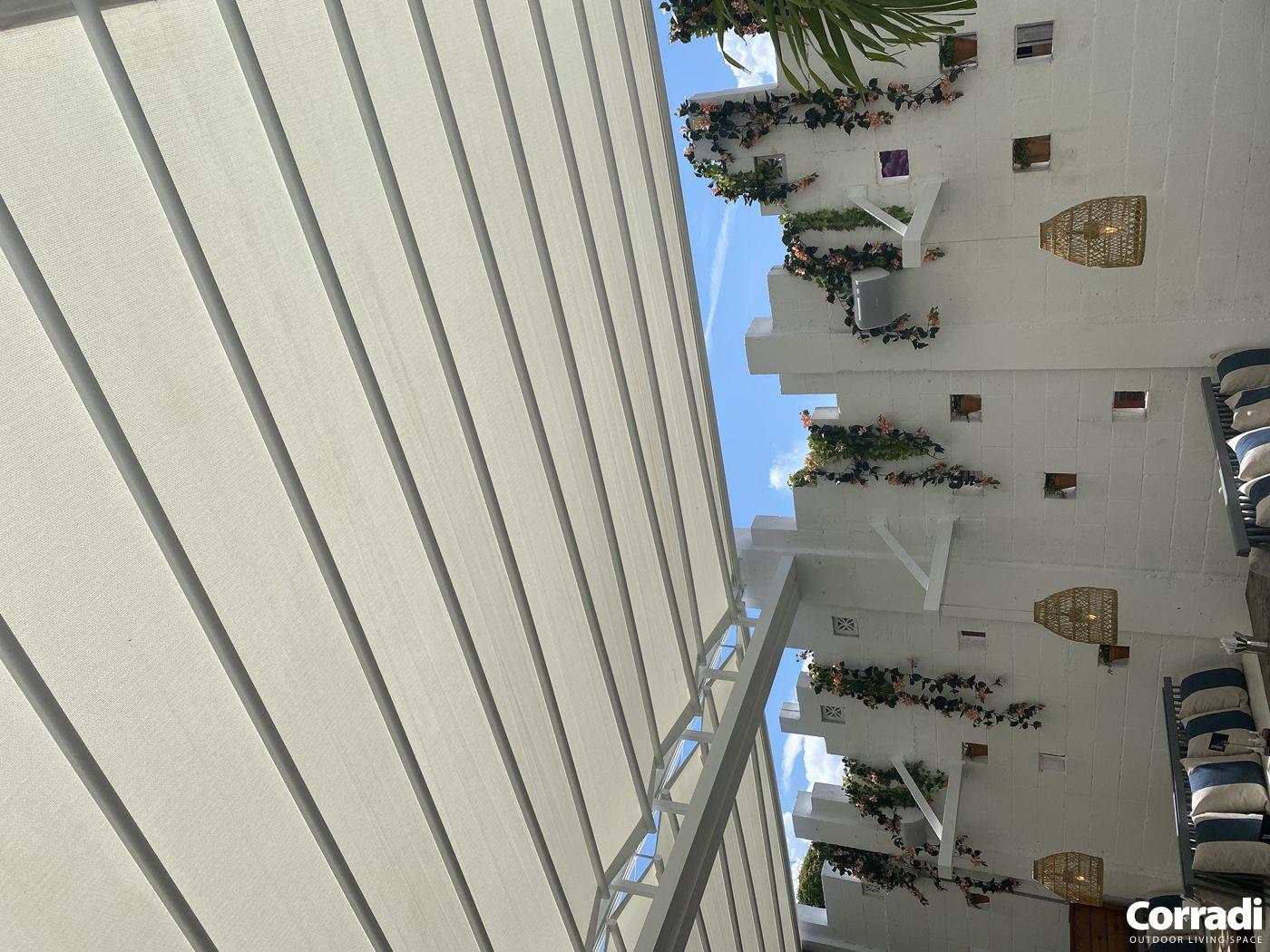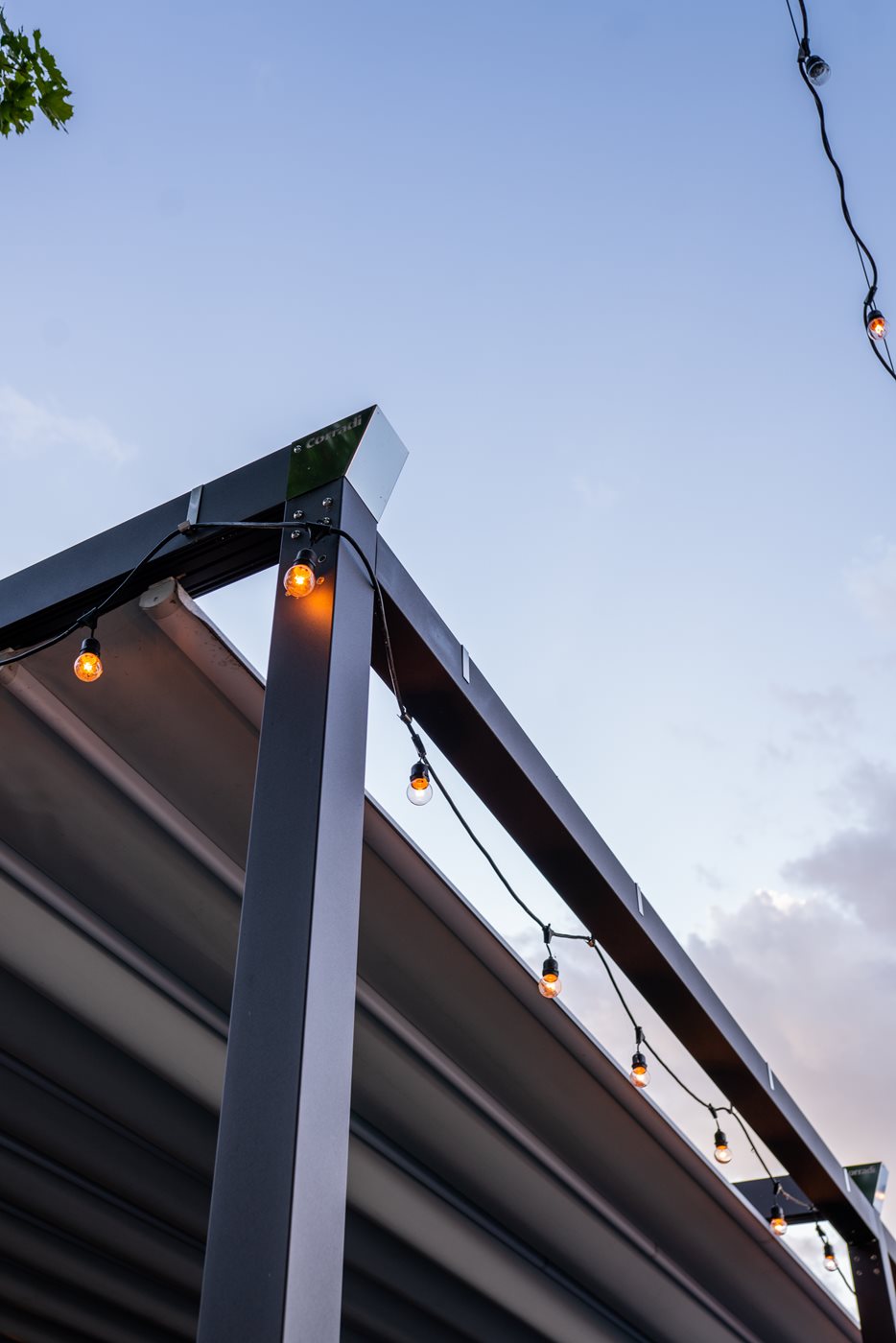 deal for enriching hotel pool areas or restaurant rooftops, the B-Space embodies unparalleled versatility, strength, and expansive coverage. Elevate both the capacity and sophistication of your establishment, and ensure guests benefit from an uninterrupted space regardless of the weather. Enjoy all-day use with the choice of optional LED lighting, or create extra privacy by adding exterior screens.