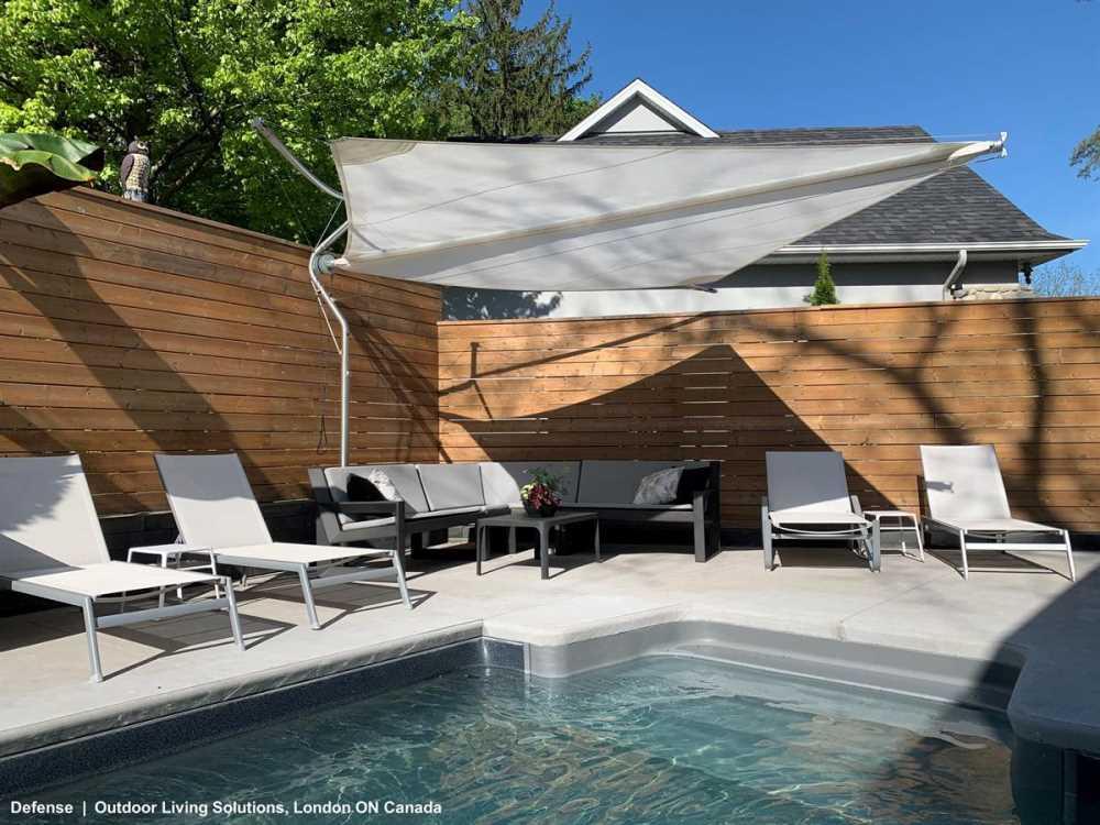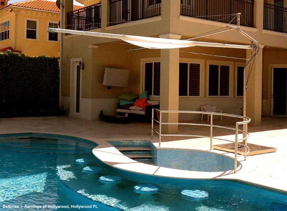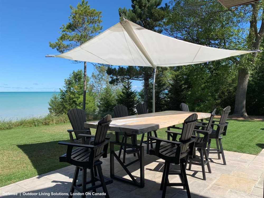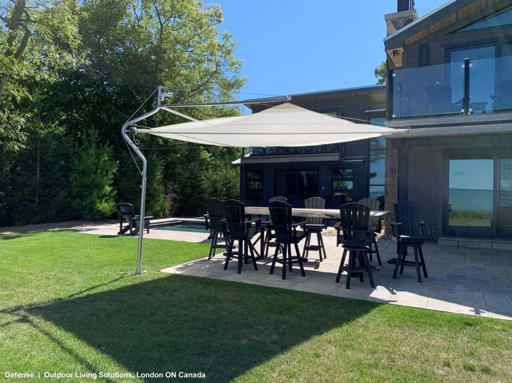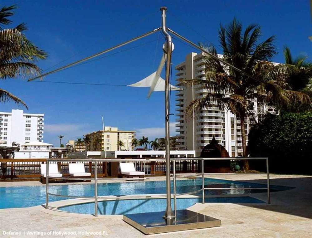 The Defense Shade Sail represents a unique, alternative solution for water-resistant solar protection. Drawing nautical inspiration and embodying marine technology, it utilizes very durable materials commonly used on boats. Despite its ethereal appearance, the sail is sturdy and low maintenance.